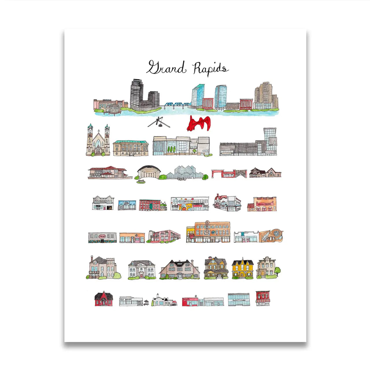 Take a tour of Grand Rapids without ever leaving the comfort of your home! This city portrait of Michigan's second-largest city will bring a taste of the rust belt right to your walls. Hang it up and explore!