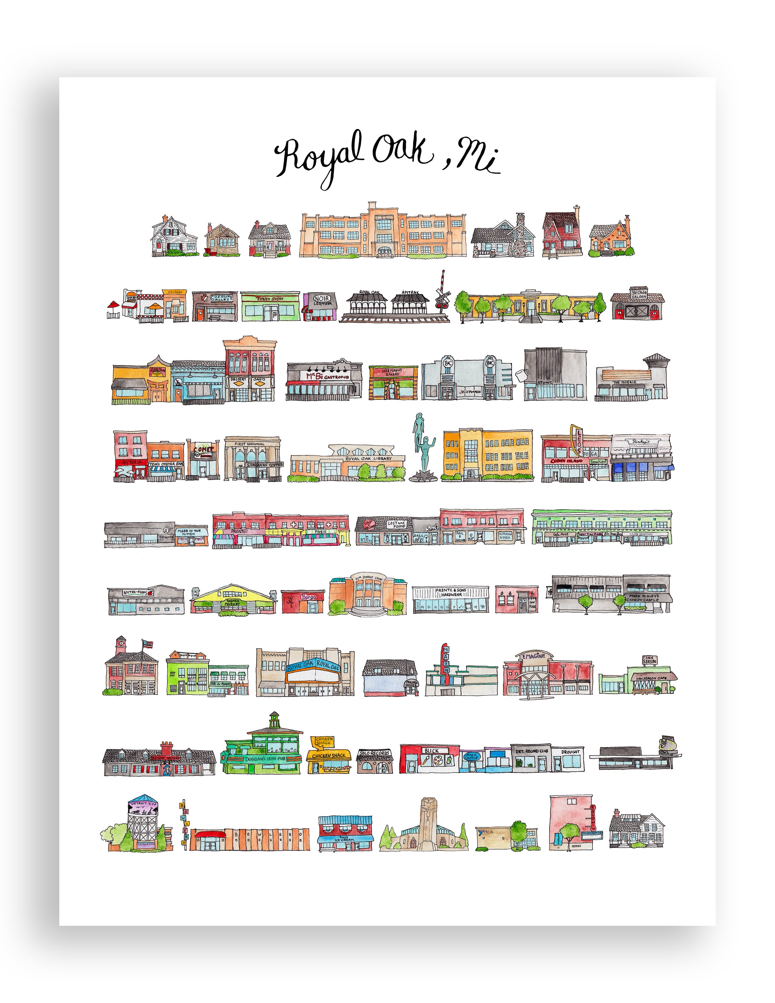Grab a piece of Metro Detroit flair with this whimsical Royal Oak artwork! This fun Michigan print captures the city's unique personality through quirky illustration. Whether you're a local legend, a Michigan expat missing home, or just someone who loves funky city art with Midwest charm, this Royal Oak treasure will make your walls do a happy dance!