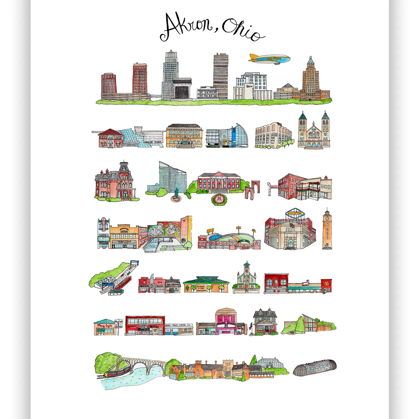 Get your hands on this classic Akron O-Hi-O print! Whether you’re a born-and-raised local or have adopted it as your home, this brilliant illustration is the perfect way to add a pop of pride to any wall. So don't be a ‘Buckeye’ - show your love for Akron!