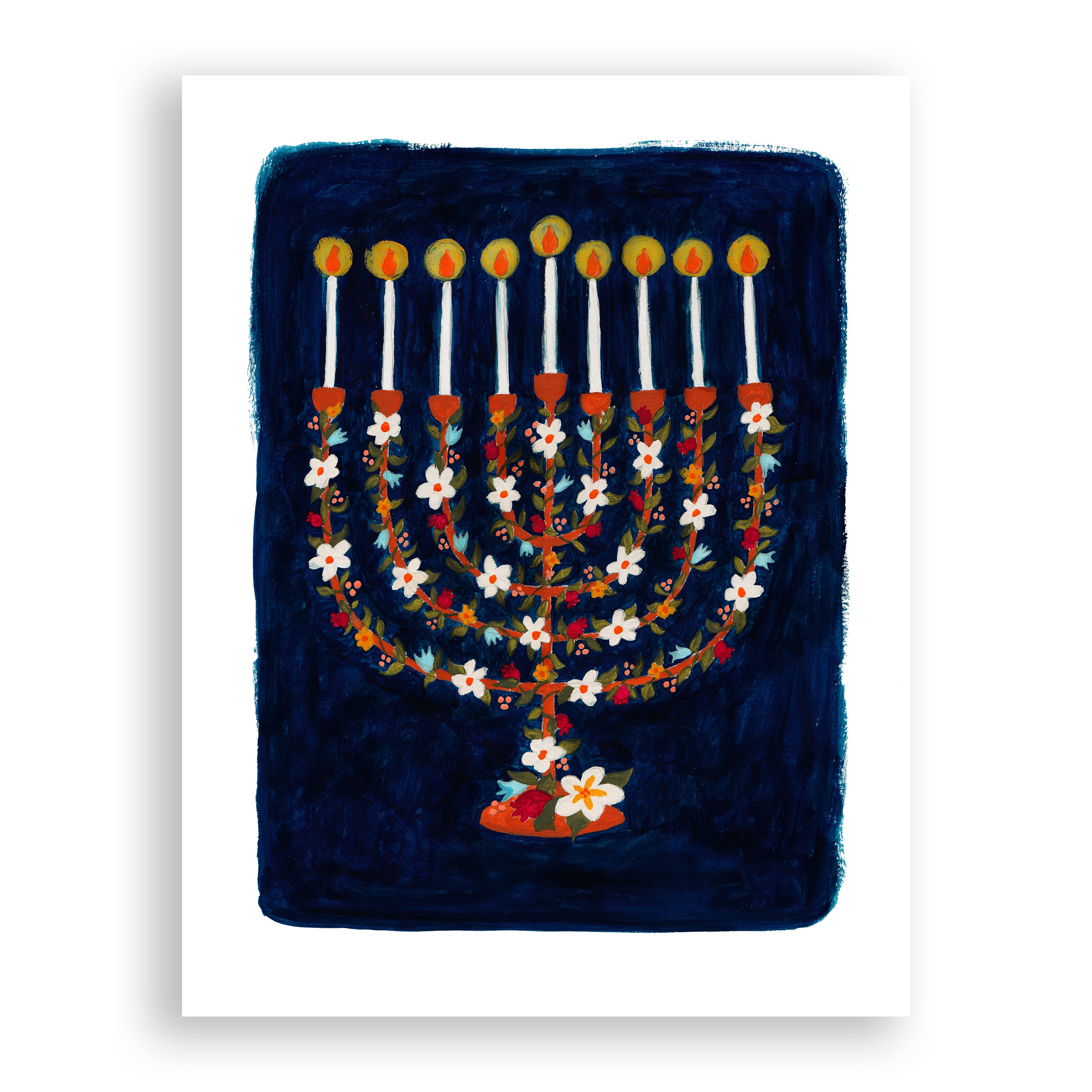 Make sure your Chanukah decorations shine this year with this one-of-a-kind, floral-print menorah illustration! Perfect for a statement piece, this eye-catching artwork is sure to brighten up any room - and the holiday spirit!