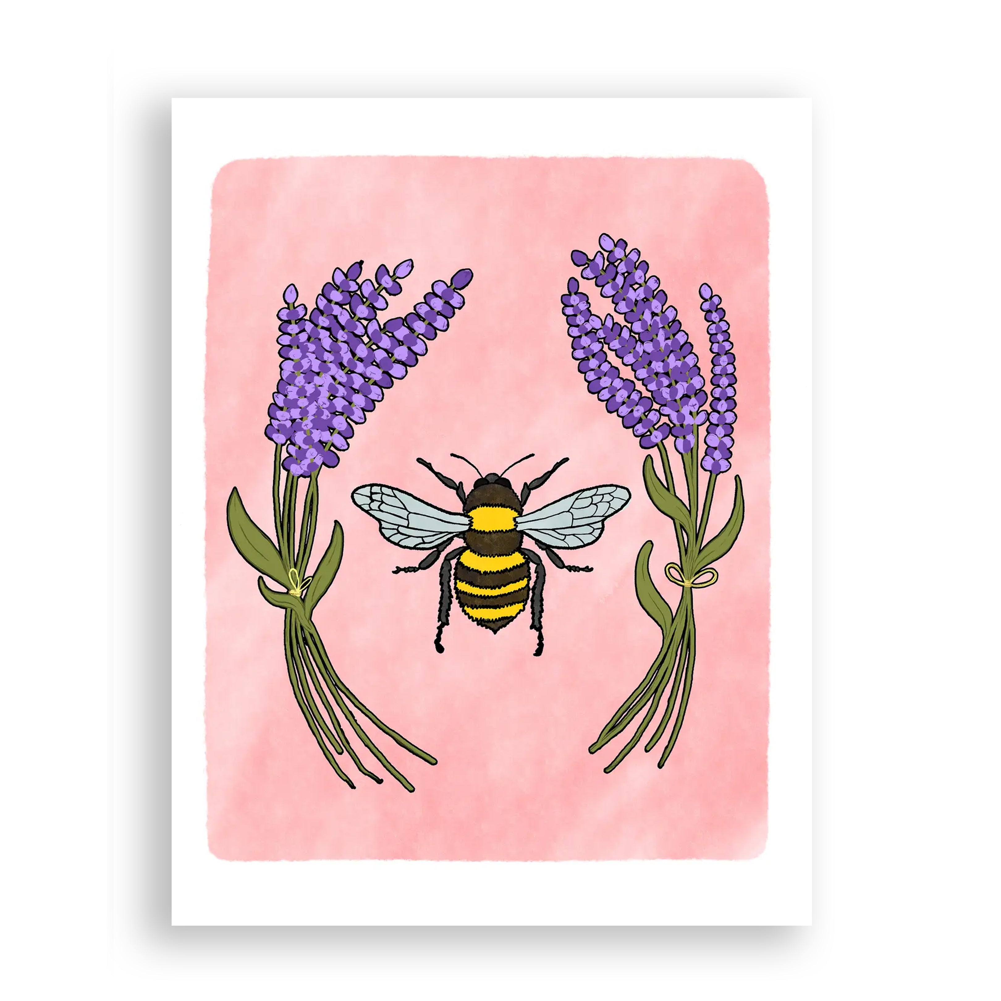 Brighten your space with this playful Lavender + Bee Print, featuring a charming illustration set against a cheerful pink background. Perfect for adding a touch of whimsy and nature-inspired fun to any room, this print brings a buzz of color and joy wherever it’s displayed.