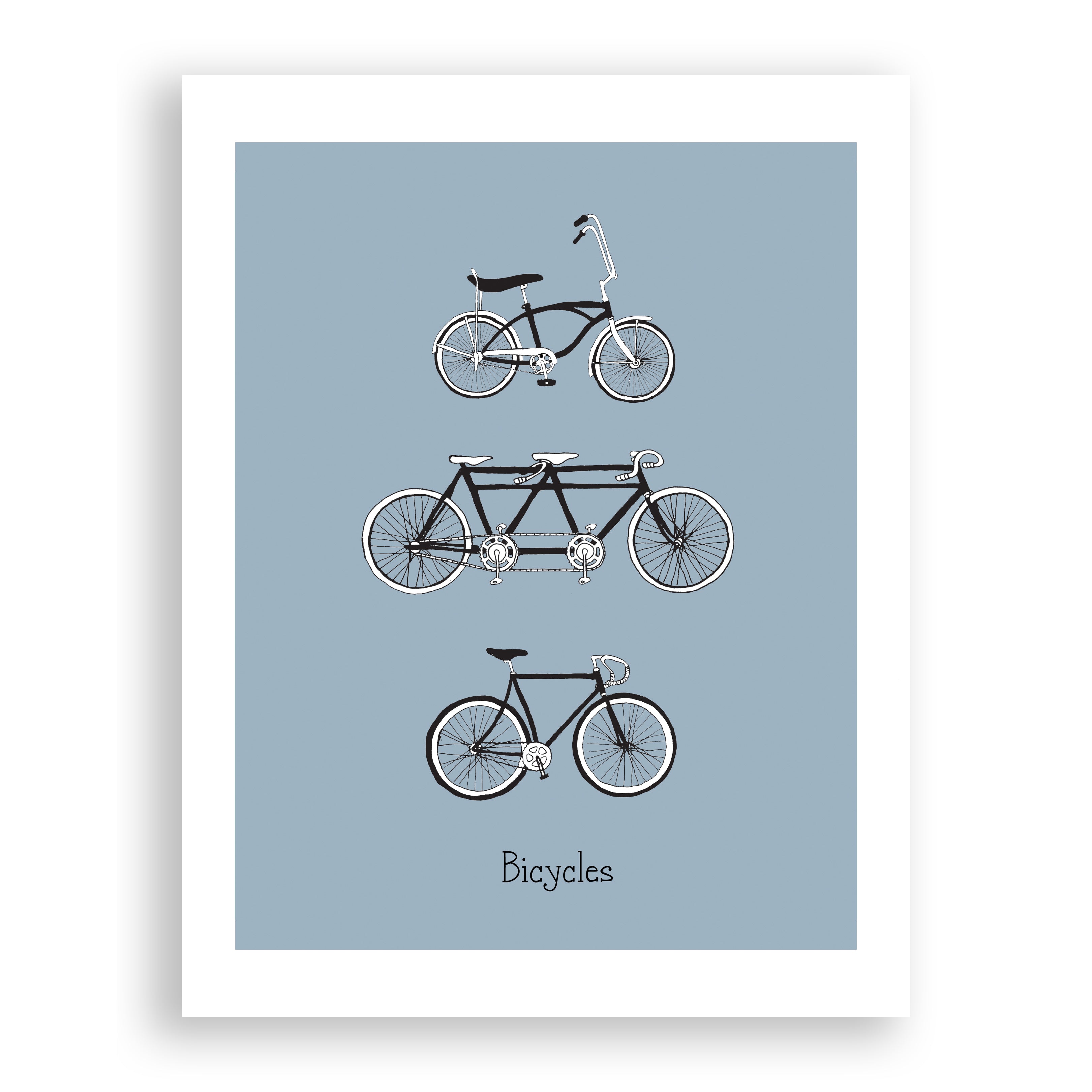 This bicycle print is great for any bike enthusiast. It comes in two colors: Yellow or Blue.