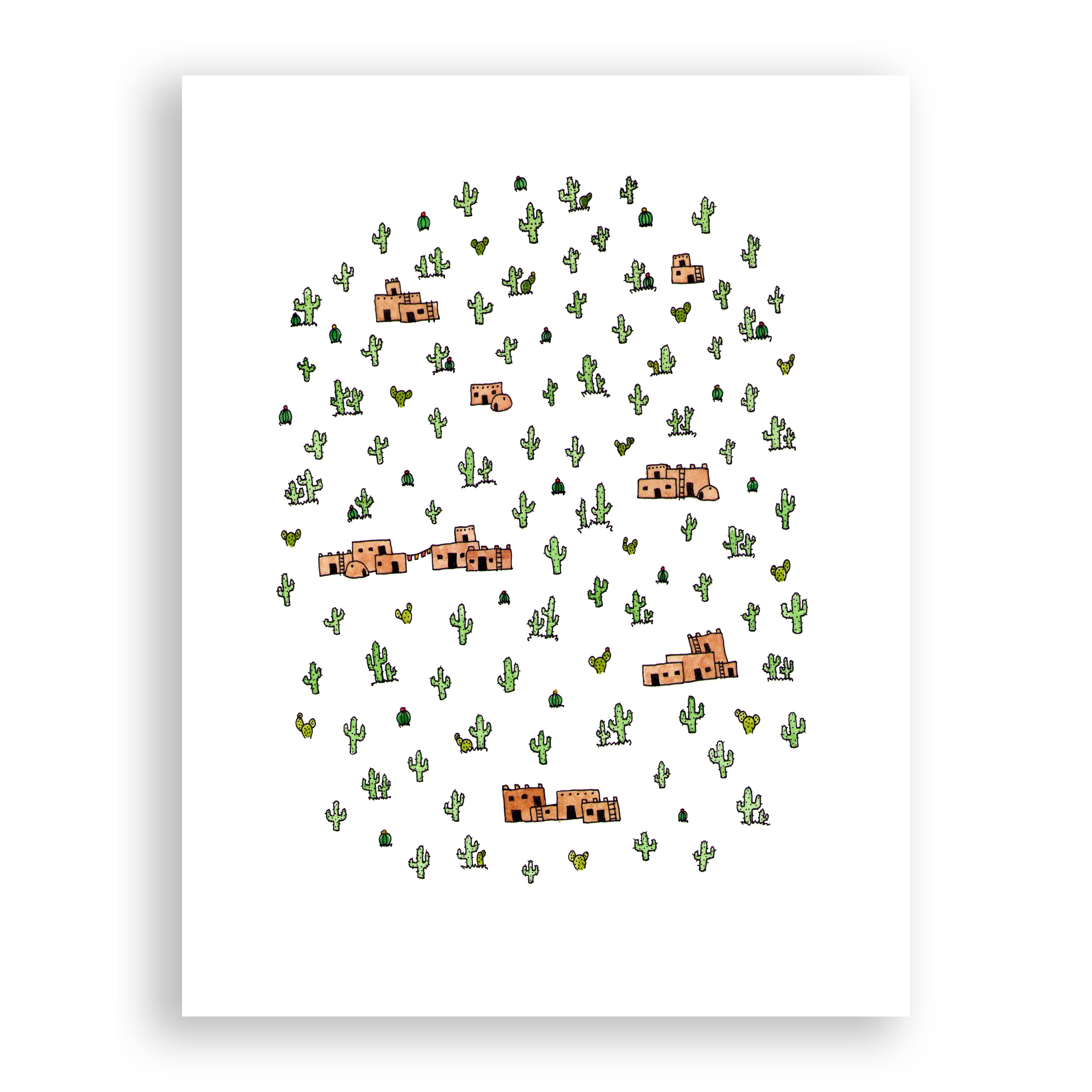 Explore the sunny side of the desert with this striking desert illustration! Featuring a whimsical cactus desert, this artistic print is sure to be a conversation starter in any room. A perfect addition for your place, no matter how arid!