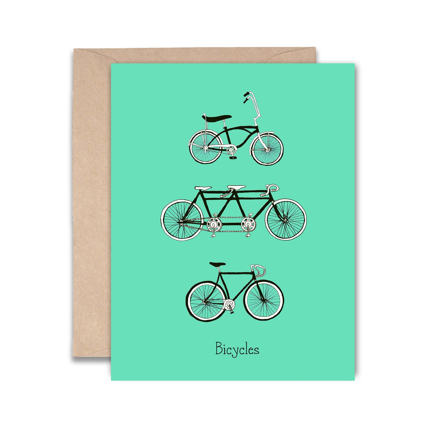 Celebrate the joy of cycling with the Bicycles Card! Featuring playful illustrations of different bicycles set against a vibrant turquoise background, this greeting card is perfect for bike lovers and anyone who enjoys a fun, whimsical design. Share a cheerful message with style and color.